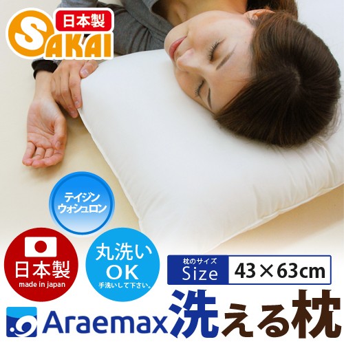 テイジンウォシュロン(R)中綿使用洗える枕ウォッシャブルピロー50×70cm10P13oct13_b【ピローまくらアレルギー対策洗える枕帝人日本製軽量アラエマックスふとん工場サカイ速乾性防ダニ寝具雑貨マクラ母の日】